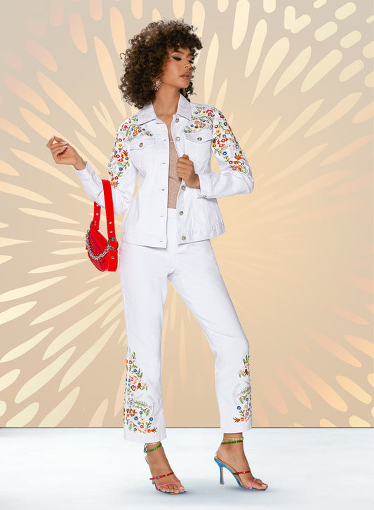 DV Jeans 8487P - White Multi - Embroidery Denim Pant