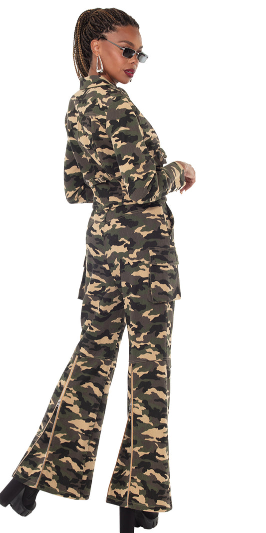 DV Jeans 8511 - Green Camo - 2 pc Zipper Jacket and Pant Set