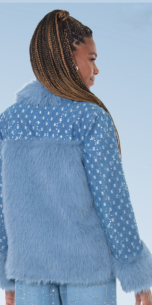 DV Jeans 8512 - Blue - Denim Faux Fur Jacket