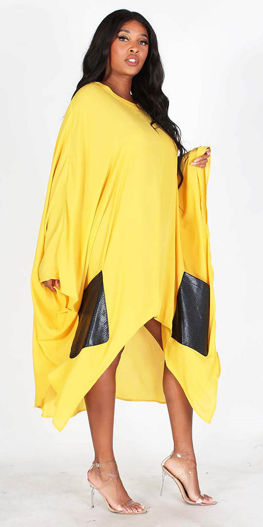 Eien EI1833 - Yellow - Sheer Faux Leather Pocket Top