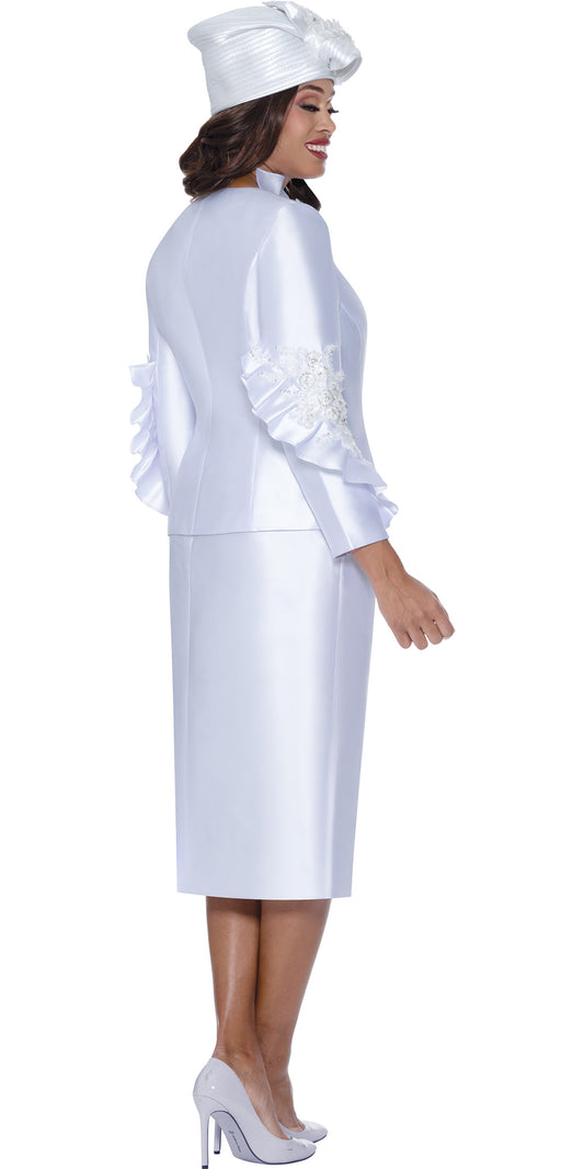 GMI 400862 - White - Twill Ruffle Trim Skirt Suit