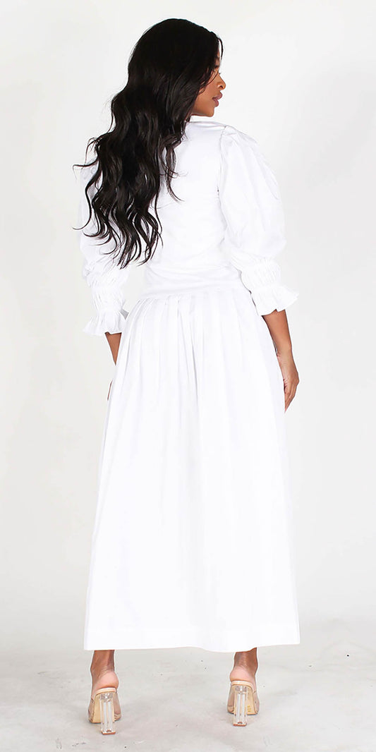Callimoda EI1896 White - Dropwaist Knit and Woven Maxi Dress
