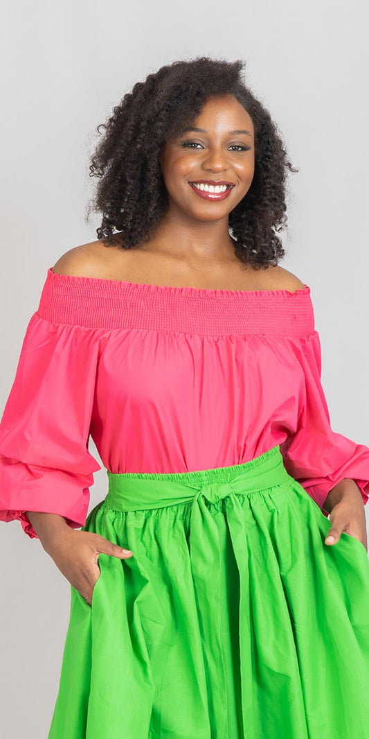 KaraChic CHH17068P - Green - Off-shoulder Plus Size Top