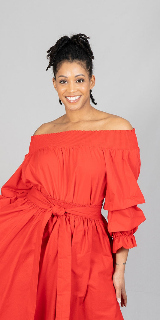 KaraChic CHH17068P - Red - Off-shoulder Plus Size Top