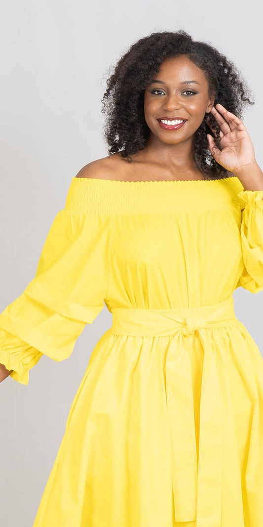 KaraChic CHH17068P - Yellow - Off-shoulder Plus Size Top