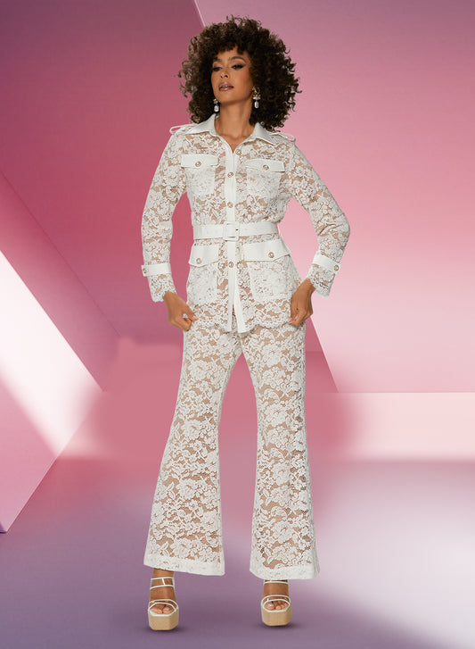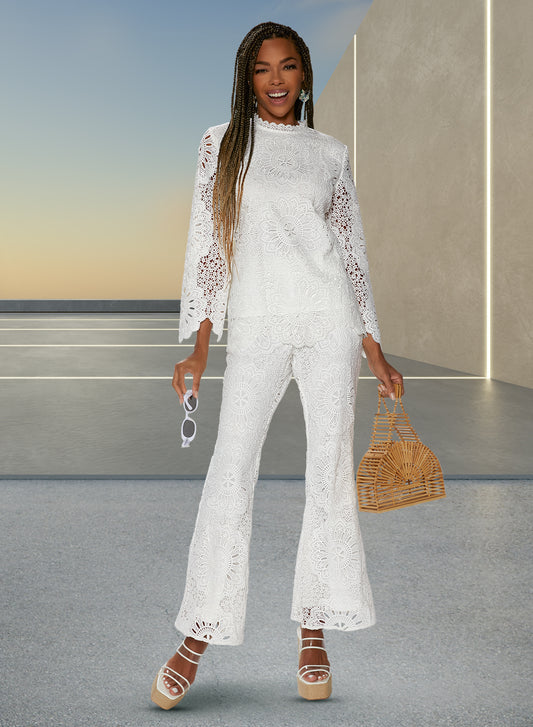 Love the Queen 17538P - White - Lined Novelty Lace Pants with Side Pockets
