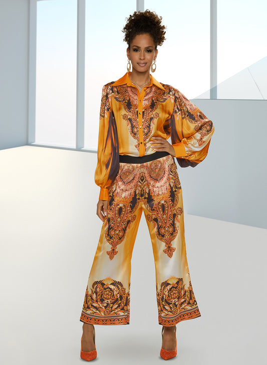 Love The Queen 17437P - Satin Print Pants with Rhinestone Details