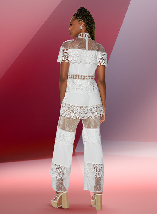 Love the Queen 17541 - White - Contrast Lined Lace Jumpsuit