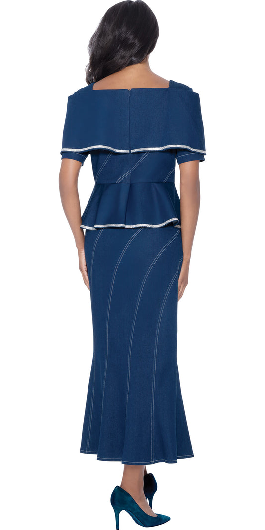 DCC - DCC4542 - Blue Embellished Twill Skirt Suit with Zipper Details