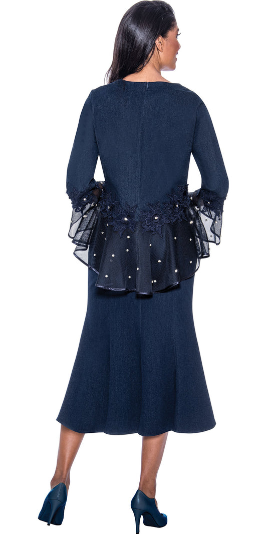Devine Sport 63992 - Navy - Embellished Denim Skirt Suit With Sheer Cuffs and Peplum