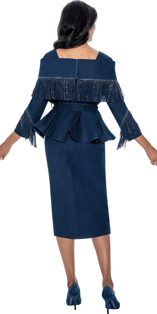 Devine Sport 800182 - Navy - Embellished Fringe Denim Skirt Set