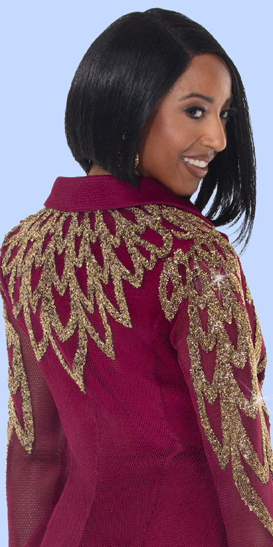 Donna Vinci 5865 - Burgundy Gold - 3 pc Jacket Skirt Set