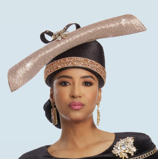 Donna Vinci - 5828 - Black Gold - Belted Velvet Cape Sleeve Dress with Rhinestone Details