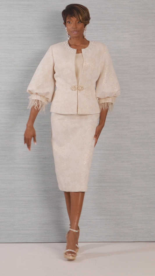 Donna Vinci 5837 - Beige - 3pc Pearl Trim Skirt Suit