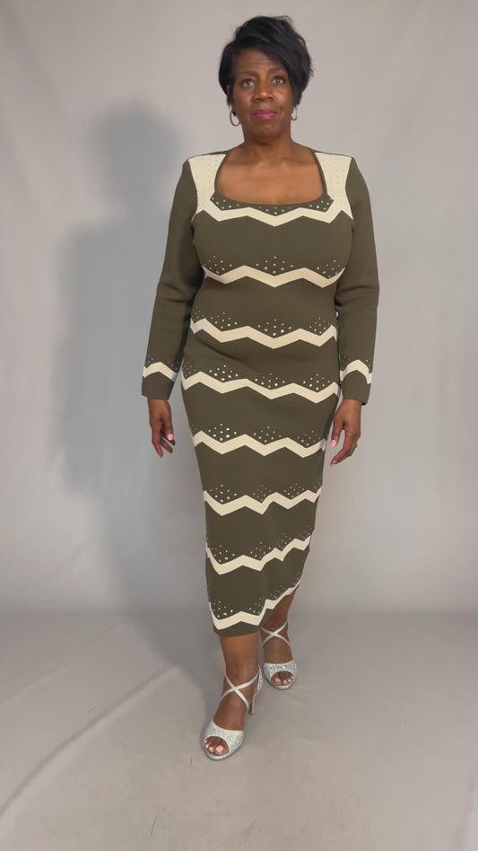 Donna Vinci - 13387 - Olive - Jacquard Knit Column Dress