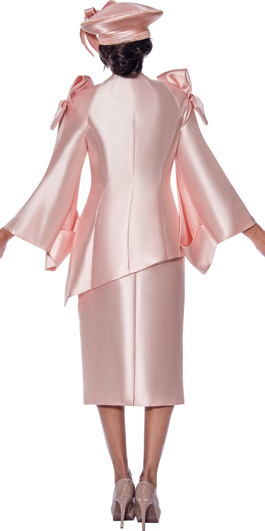 GMI - 9992 - Pink - Shoulder Bow Asymmetrical Twill 3pc Skirt Suit