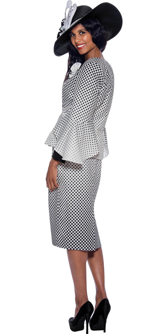 GMI G8733 - 3PC Polka Dot Skirt Suit with Flare Sleeves