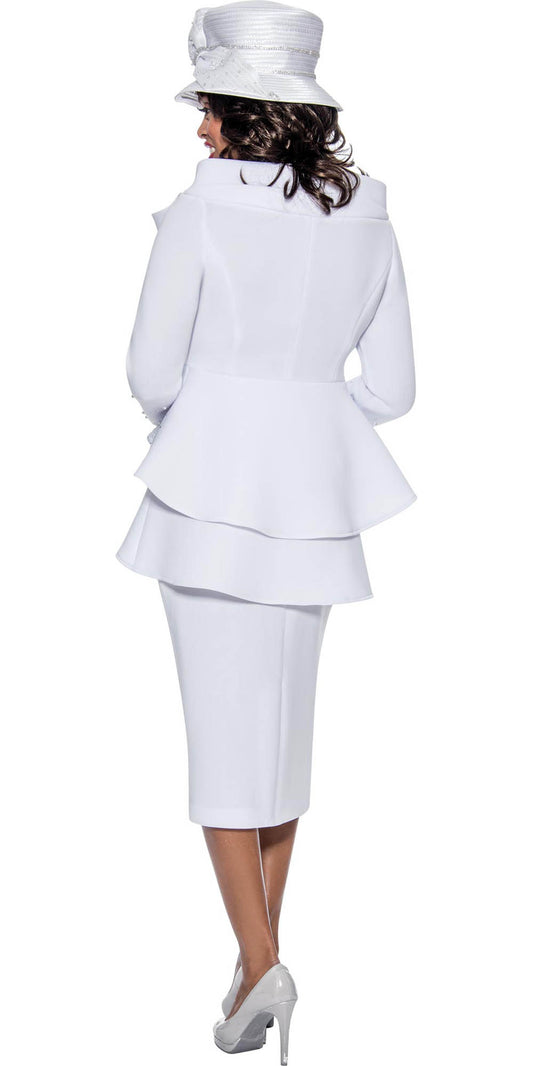 GMI G8982 - White - Bead and Gem Embellished Layered Peplum Womens Church Suit