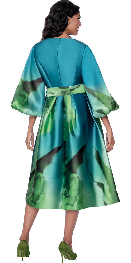 Dresses By Nubiano 100221 - Green - Rose Print Dress