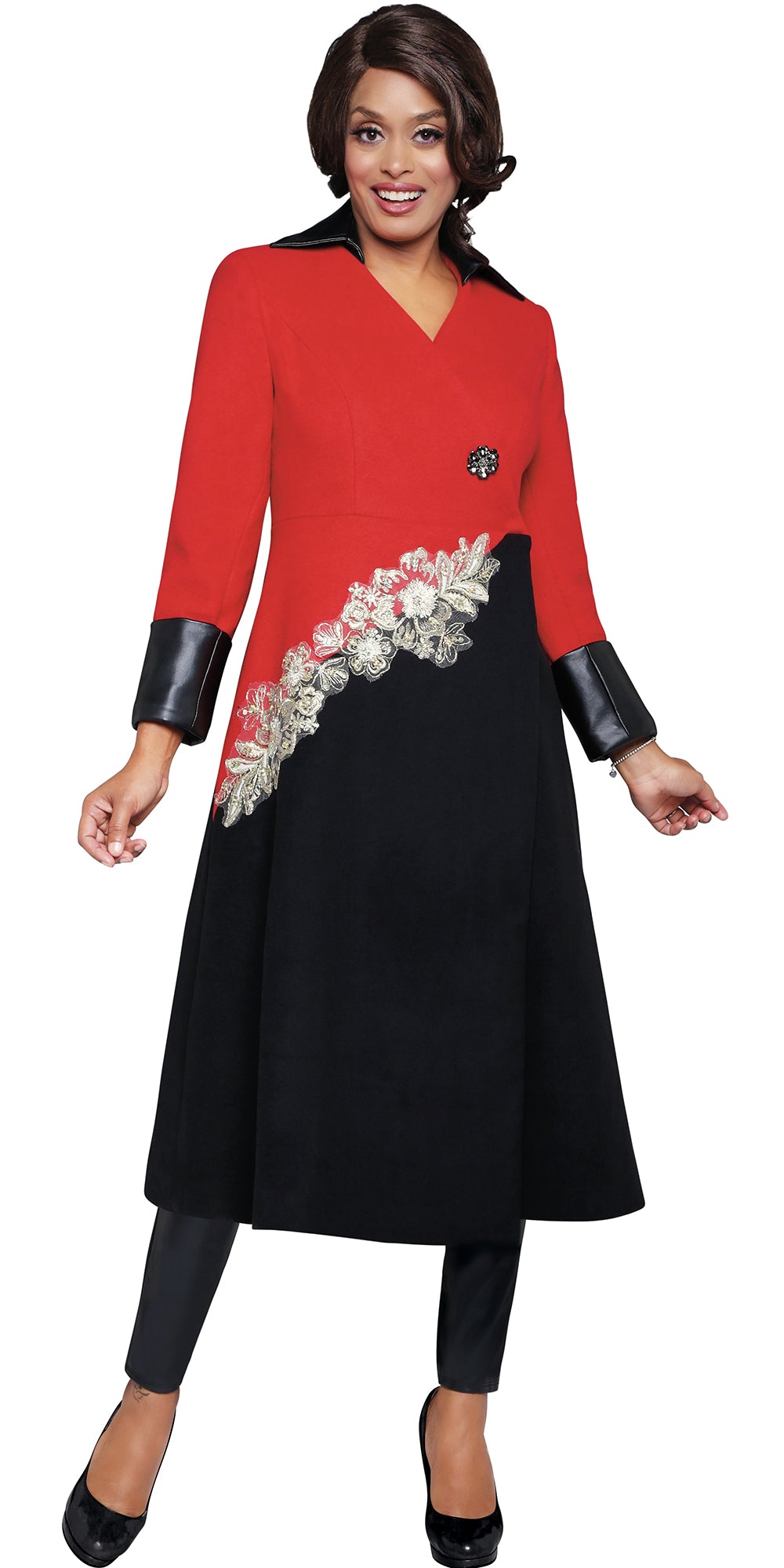 DCC - DCC101CT - Black / White / Red - Womens Cuffed Long Coat