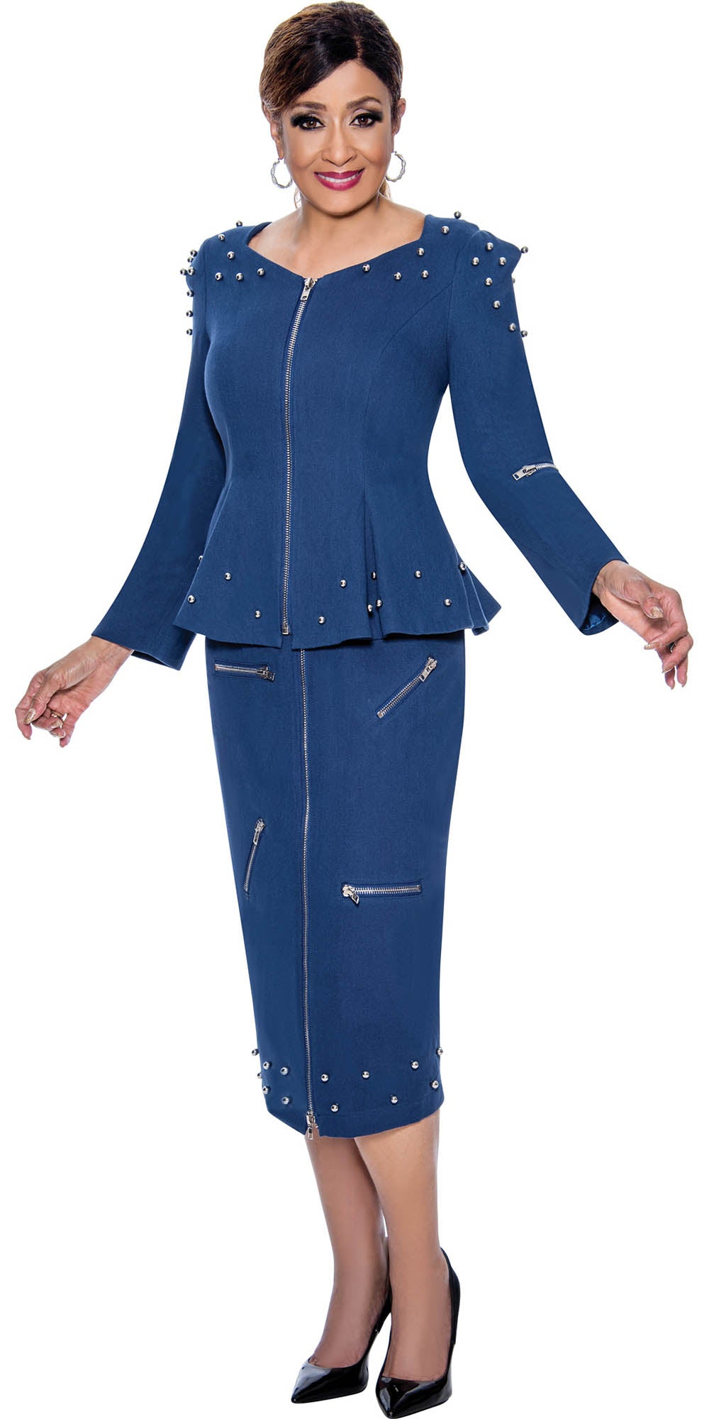 DCC - DCC4542 - Blue Embellished Twill Skirt Suit with Zipper Details
