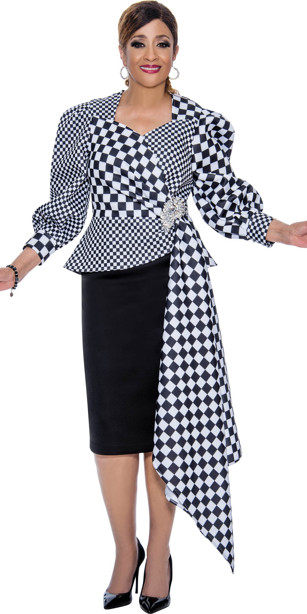 DCC - DCC4662 - Black/White - Houndstooth 2PC Side Cascade Skirt Suit