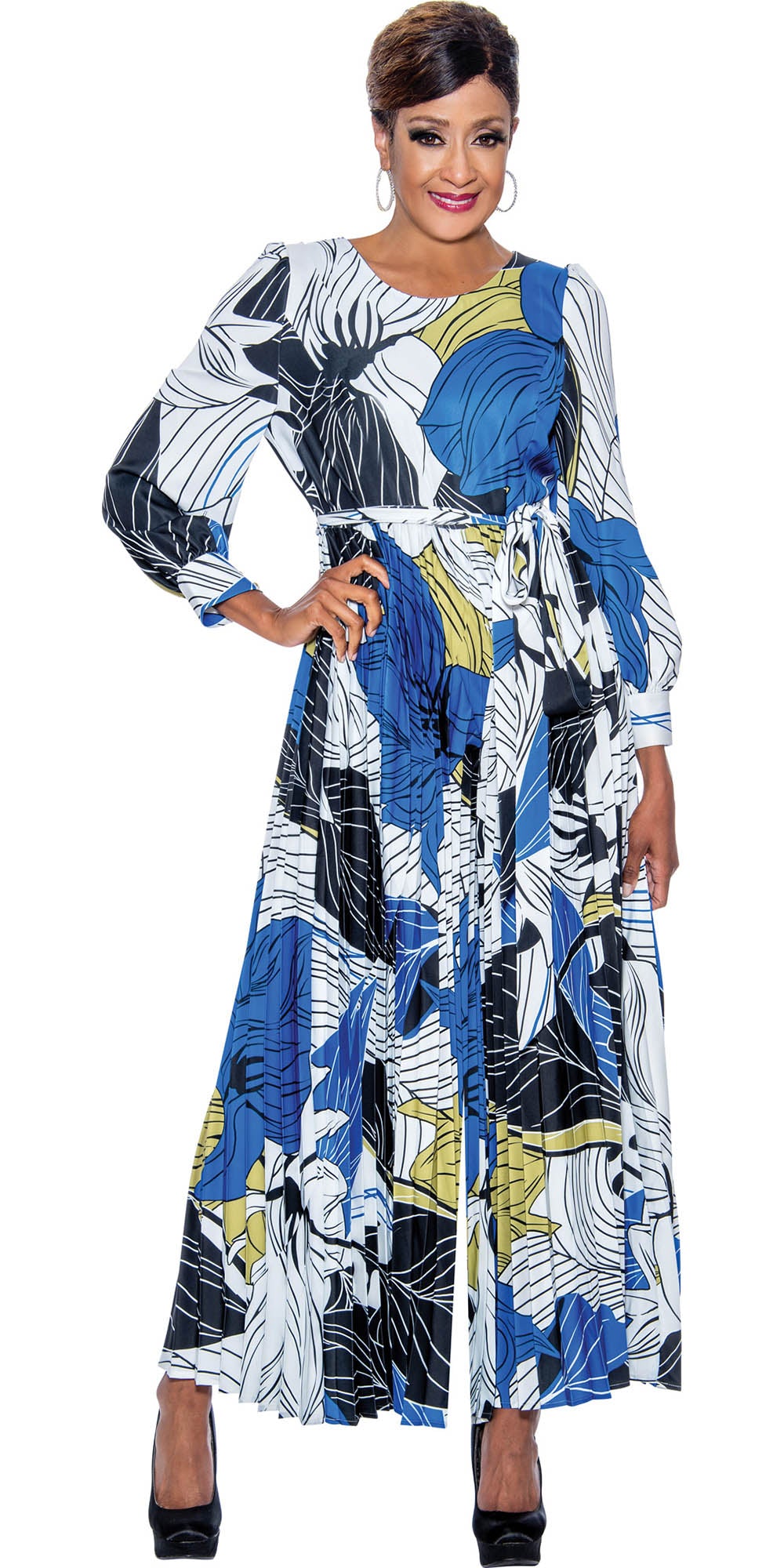 DCC - DCC4671 - Long Sleeve Belted Print Multicolor Jumpsuit