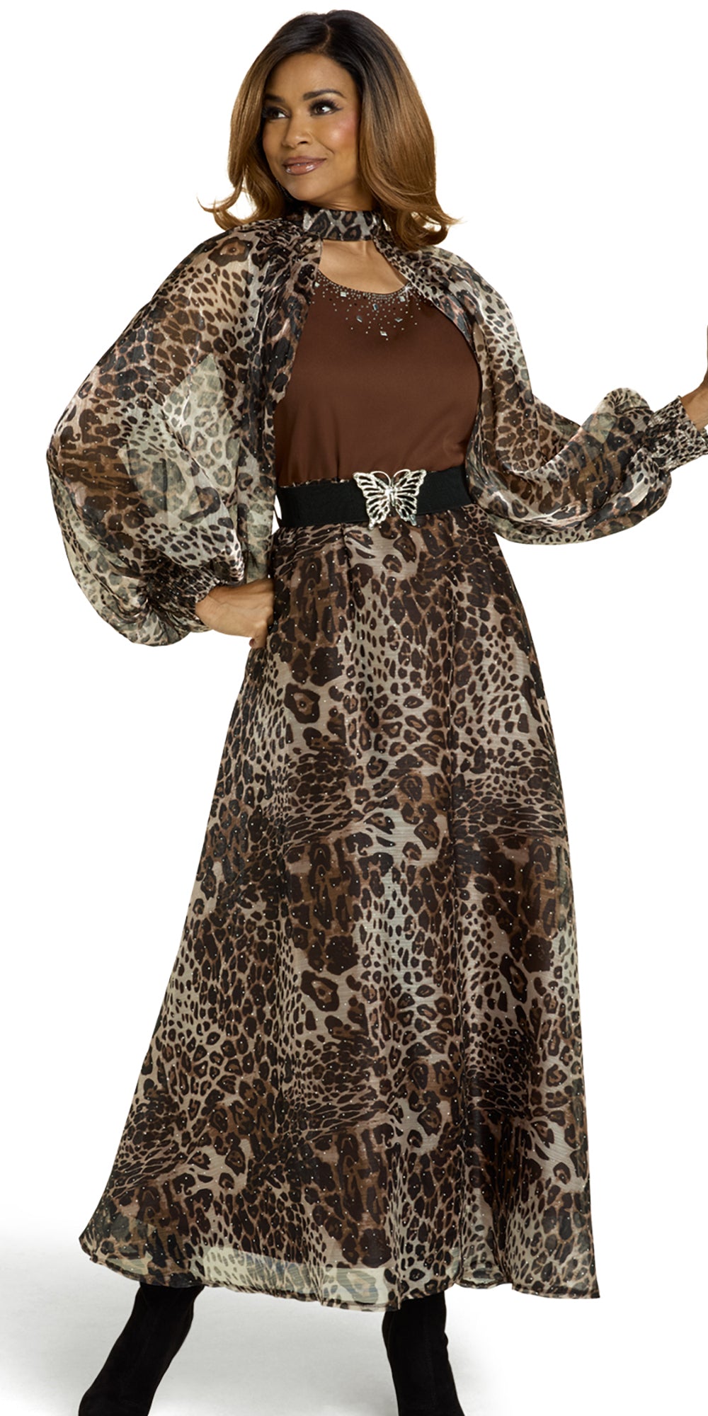 Elevate your wardrobe with the Donna Vinci 12211 Animal Print 2-piece Dress and Shrug Organza Set. This expertly crafted ensemble features a stylish animal print dress paired with a delicate organza shrug, combining bold patterns with sheer elegance. Perfect for formal occasions, the lightweight shrug adds a refined layer without compromising comfort, while the dress offers a flattering silhouette. This set balances statement style and sophisticated design, making it a versatile choice for your next special event.