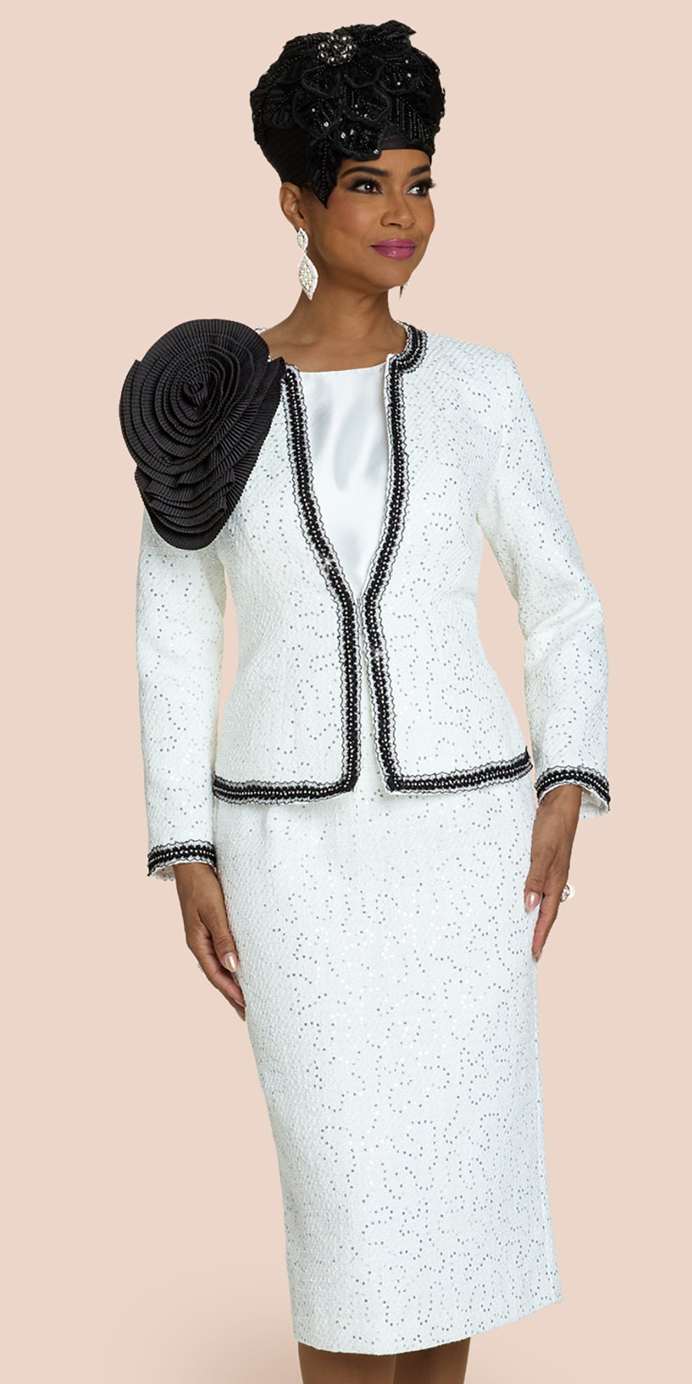 Donna Vinci 12218 - White Black - 3 pc Rhinestone Trim Jacket Skirt Set