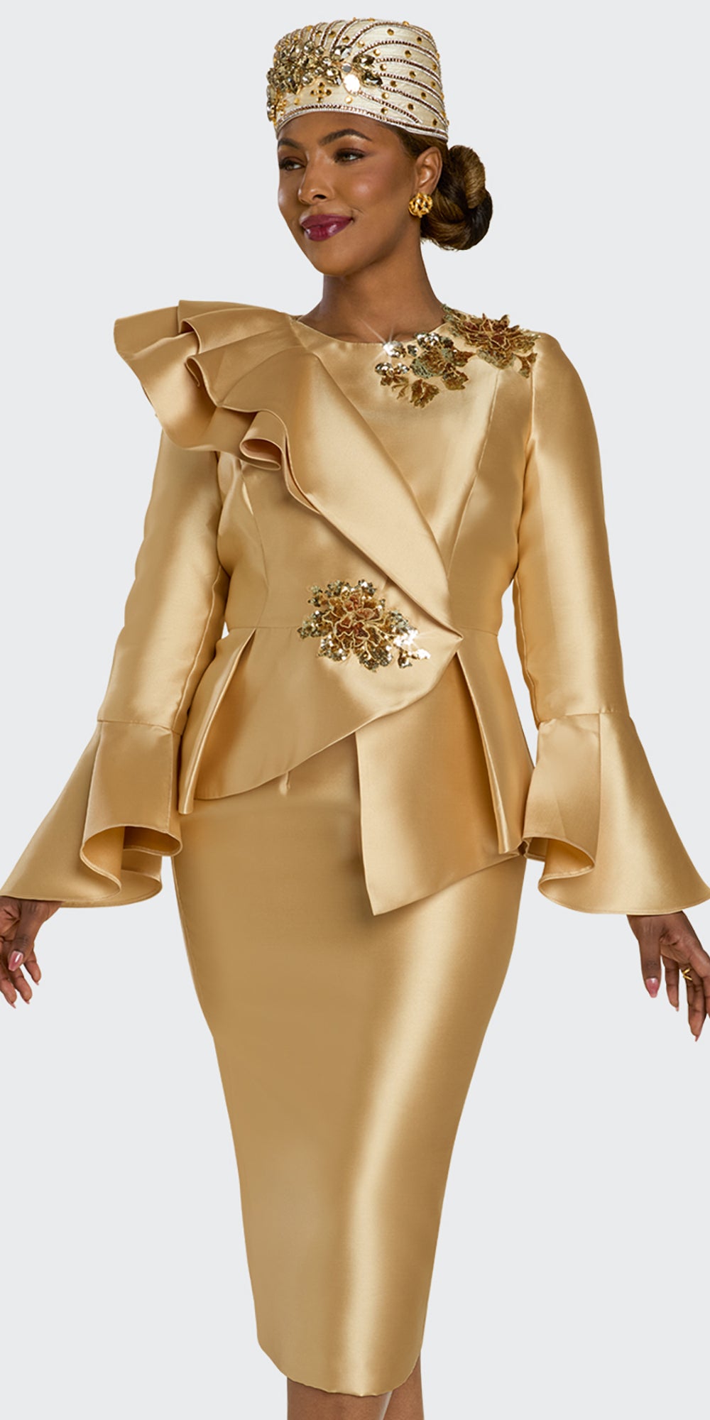 Donna Vinci 12229 - Gold - 2 pc Silk Jacket Skirt Set
