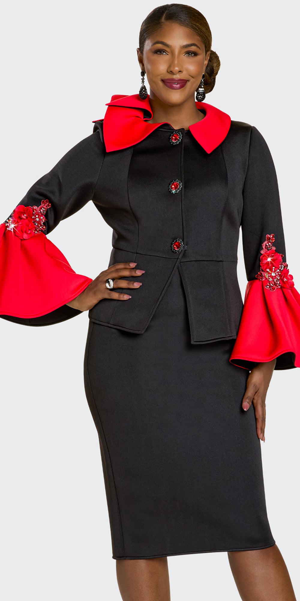 Donna Vinci 12233 - Black Red - Embellished Stone Trim Skirt Suit