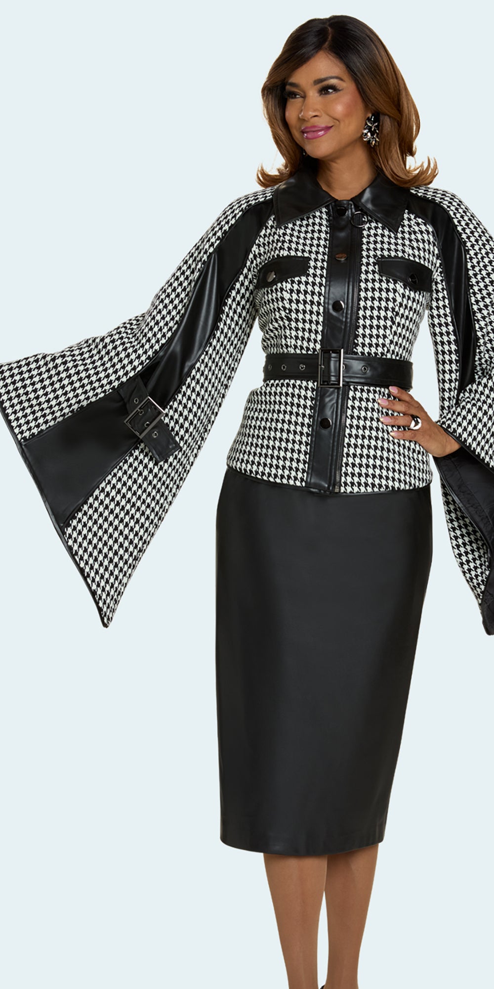 Donna Vinci 12236 - Black White - 2 pc Houndstooth Jacket Skirt Set