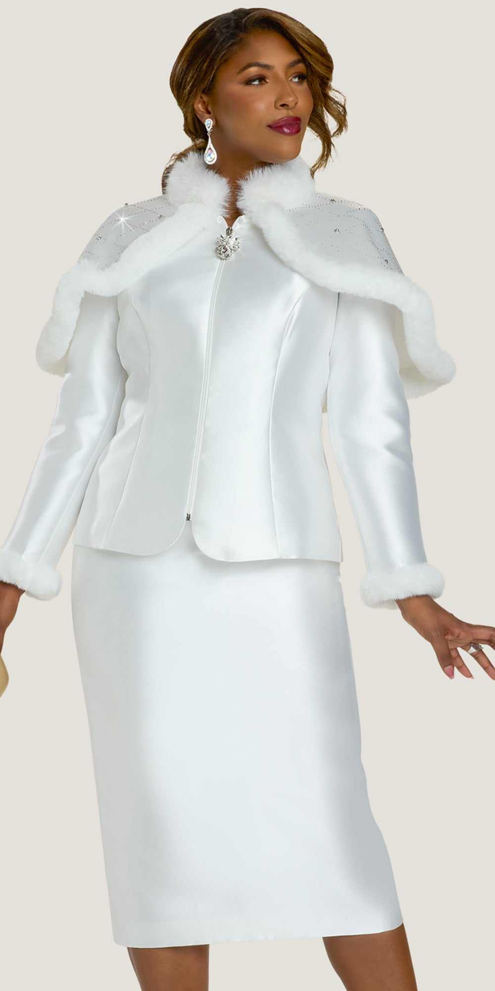 Donna Vinci 12240 - Off-White - 2 pc Faux Fur Jacket Skirt Set