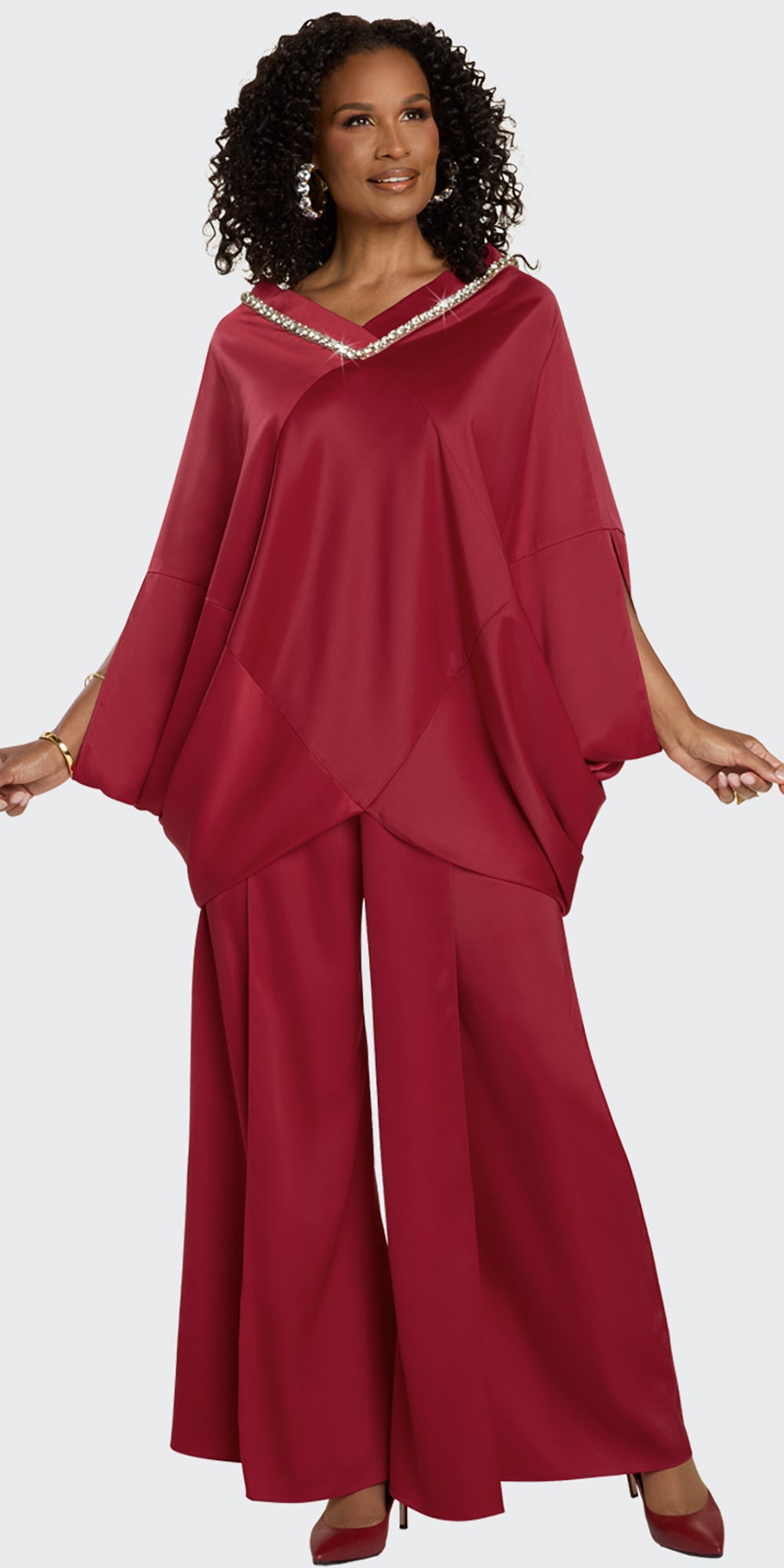 Donna Vinci 12244 - Sangria Red - 2 pc Satin Pant Set
