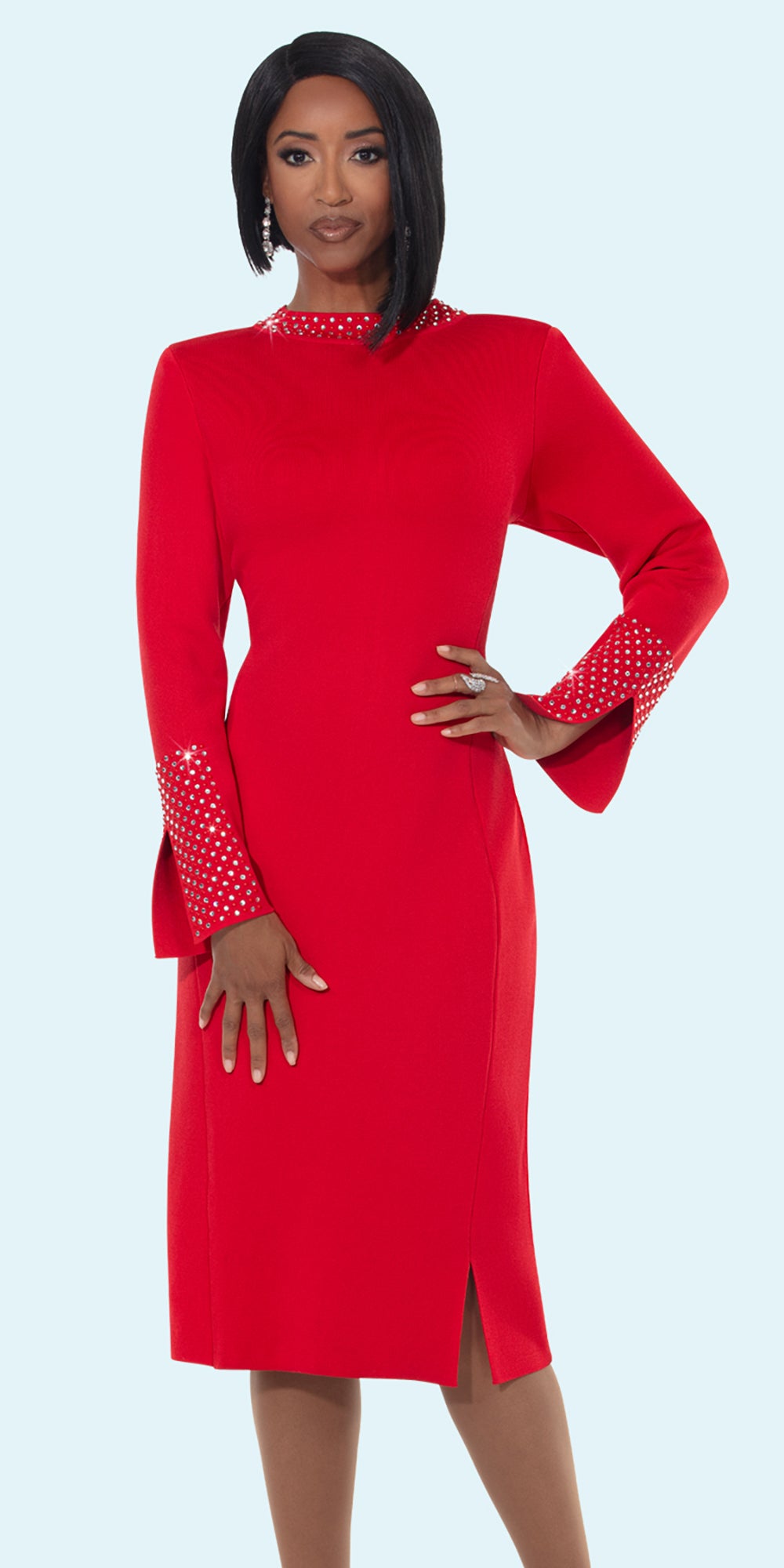 Donna Vinci 13437 - Red - Rhinestone Knit Dress