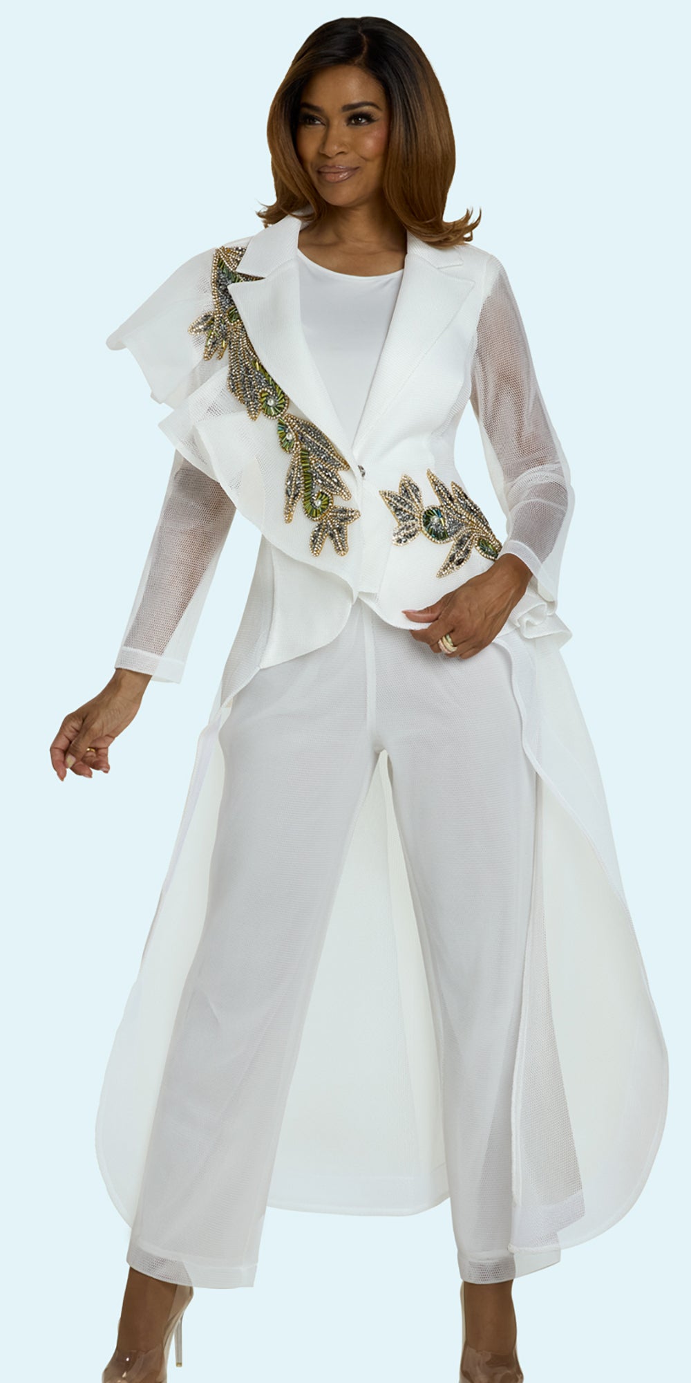 Donna Vinci 5869 - White - 3 pc Mesh Hilo Pant Set