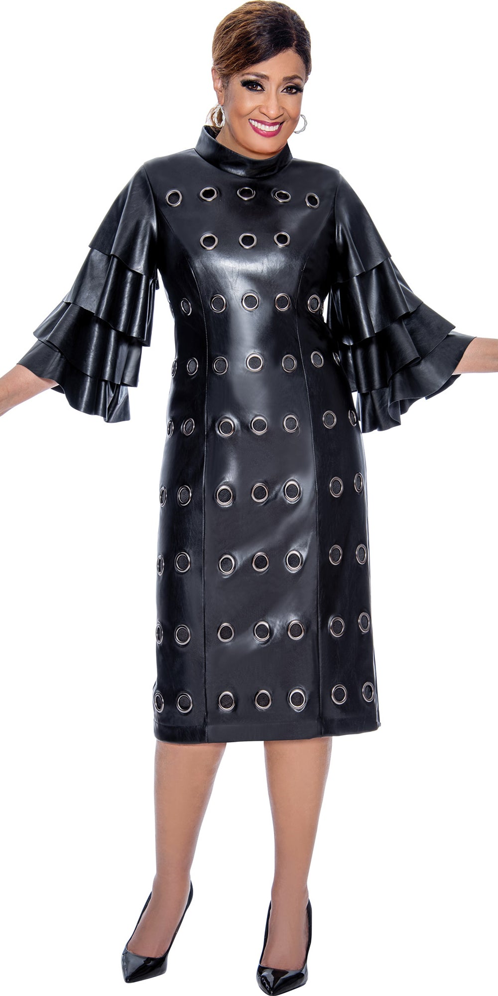 Dorinda Clark Cole - DCC4631 - Black - Leatherette Grommeted Dress