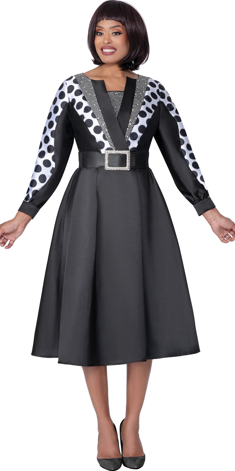 Dresses By Nubianoi 100571 - Black White - Twill Belted Dress
