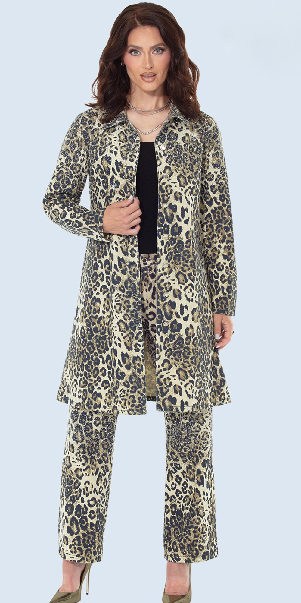 DV Jeans 8503 - Animal Print - 2 pc Long Denim Jacket and Pant Set