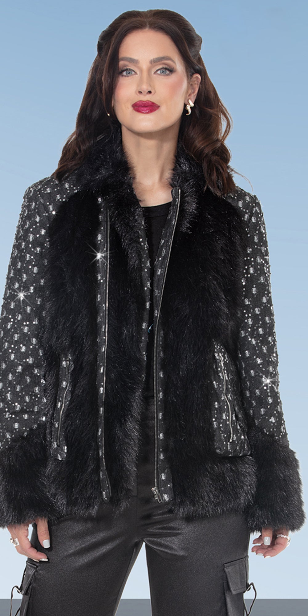 DV Jeans 8512 - Black - Denim Faux Fur Jacket