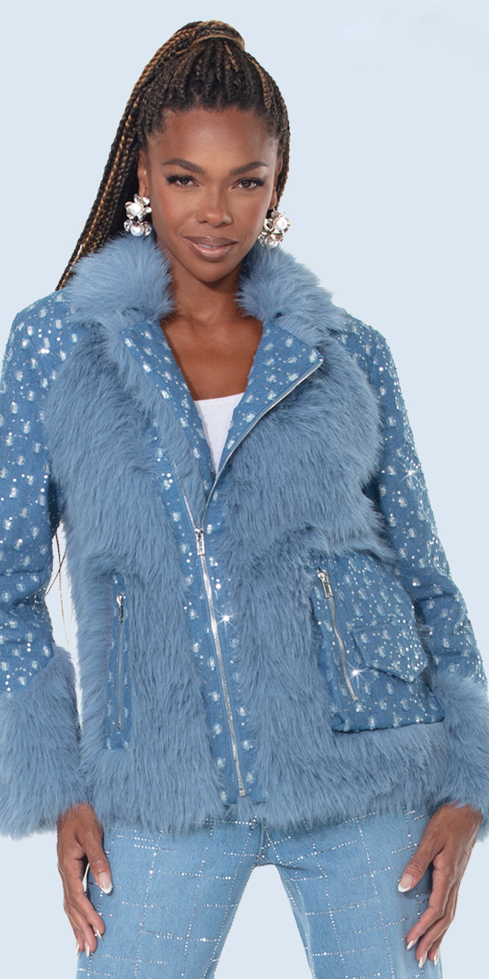 DV Jeans 8512 - Blue - Denim Faux Fur Jacket