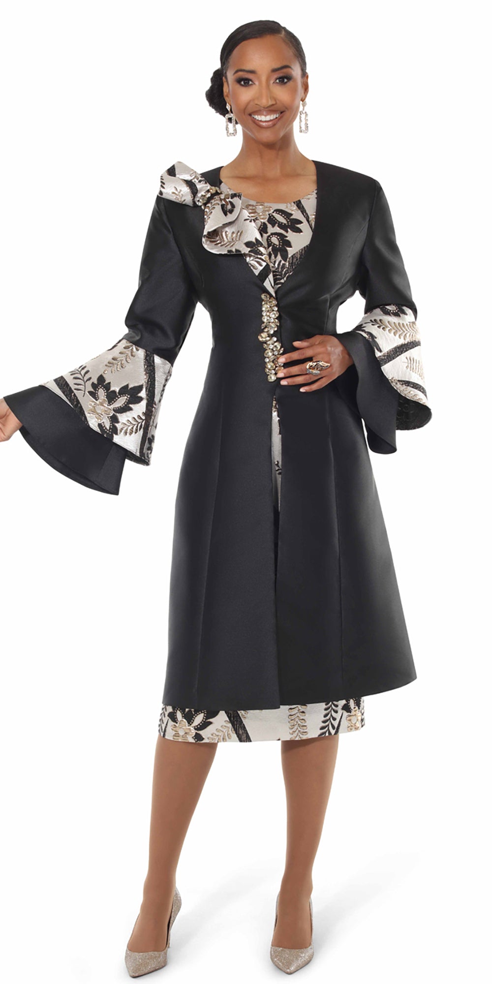 Elevate your wardrobe with the Lisa Rene 229YJ Black Multi 2-piece Brocade Dress and Jacket Set. This expertly crafted ensemble features a richly textured brocade fabric in a sophisticated black multi-tone, combining elegance with timeless style. The dress offers a flattering silhouette, while the coordinating jacket adds a polished finish, perfect for formal occasions or professional settings. Designed for comfort and refined appeal, this set ensures you make a confident statement wherever you go.