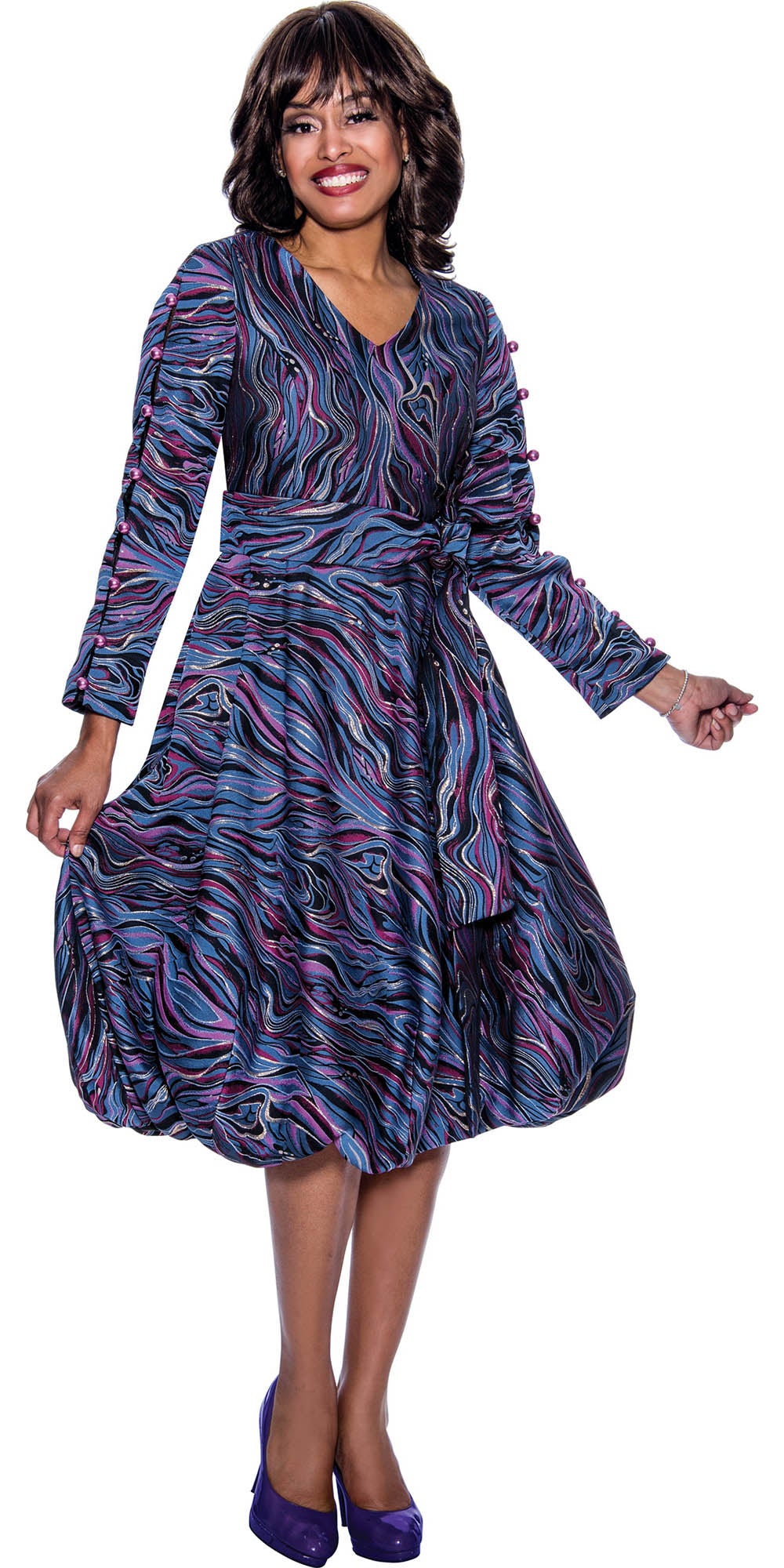Nubiano Dresses DN1161- Swirl Print Dress with Bubble Hem
