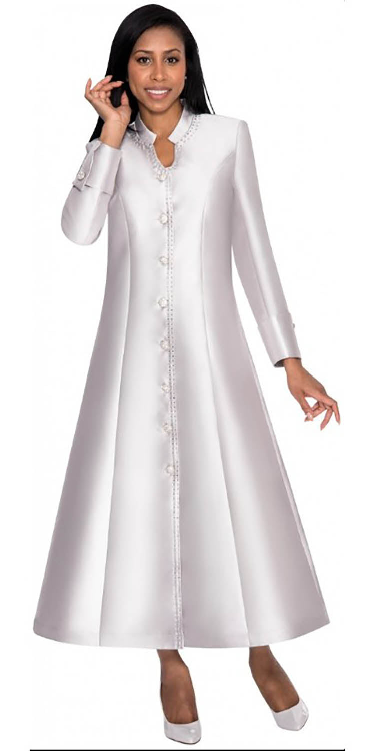 Nubiano Dresses DN 5881 - White Church Dress/Robe with Button Front and Jewel Trim